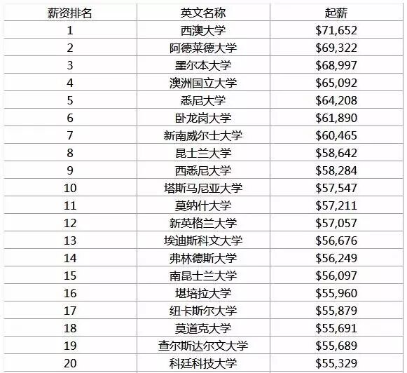 据近期发布的2014年澳洲大学毕业生薪资排行榜表明,澳洲各大学府毕业生的平均薪资为AUD $52,500,相较于2013年的AUD$52,450和2012年的AUD$52,000变化不大。