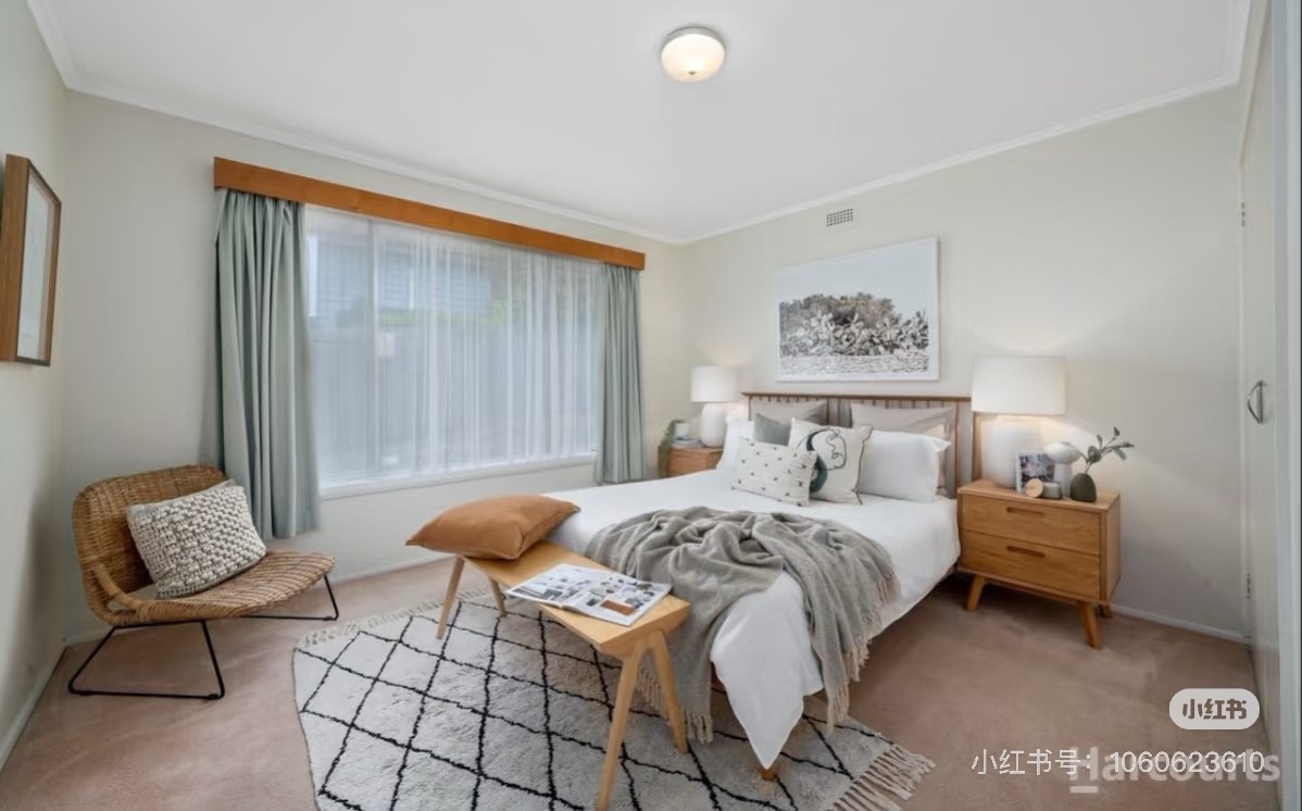 【主人房】 200刀/week。无独立卫浴,配备Queen size床+床垫、一对床头柜、五斗柜、桌椅、入墙衣柜。